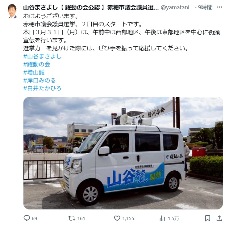 2025年4月6日に行われた兵庫県赤穗市議会議員選挙に、『躍動の会』より出馬をしていた元赤穂市職員の山谷まさよしさんが話題になっています。